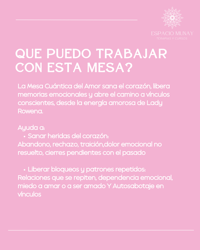 La Mesa Cuántica del Amor, acompañada por la energía amorosa de Lady Rowena, es una herramienta profunda para sanar el corazón, liberar memorias emocionales y abrirte a vínculos conscientes y alineados a tu alma.