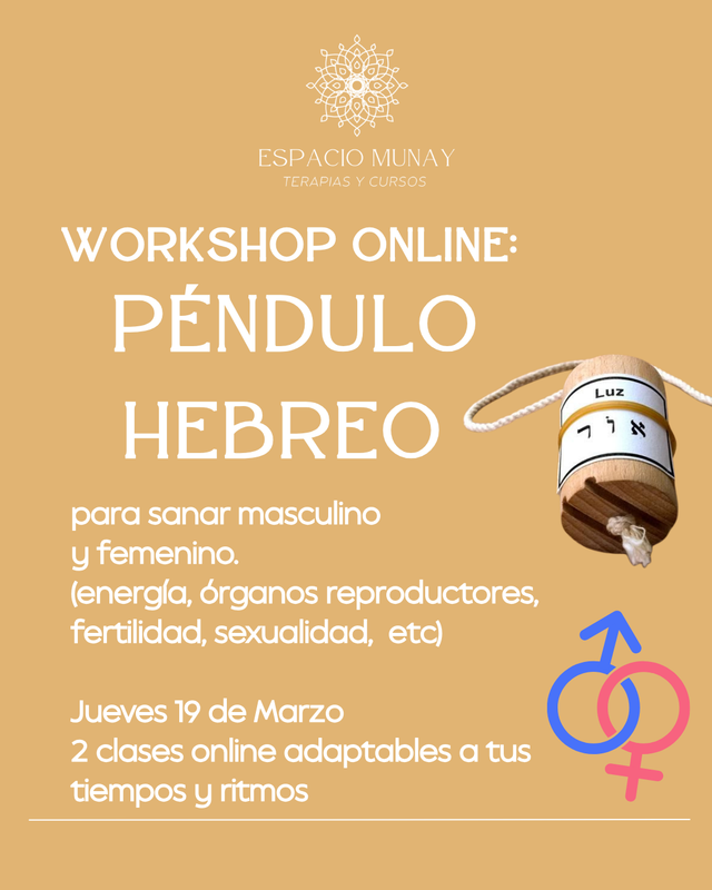 El Péndulo Hebreo es una herramienta directa y poderosa para trabajar bloqueos energéticos, en este workshop específicamente trabajamos con bloqueos vinculados a: sanación de utero órganos reproductores sexualidad fertilidad memorias emocionales y del linaje energías en desequilibrio