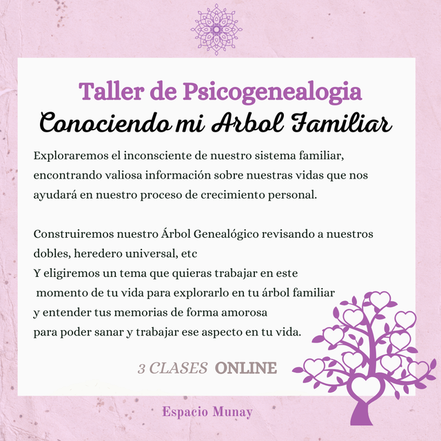 Sumate a esta experiencia de acercarte con a tu árbol genealógico con amor y entender que rol estás jugando en tu árbol genealógico, que lealtades sostienes que no te suman para tu propio crecimiento y como puedes trabajarlas para liberarlas desde el amor y lugar adecuado 🙌